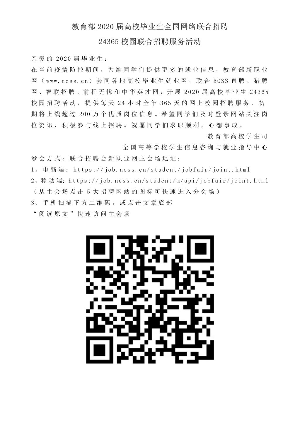 教育部2020届高校毕业生全国网络联合招聘.24365校园联合招聘服务活动