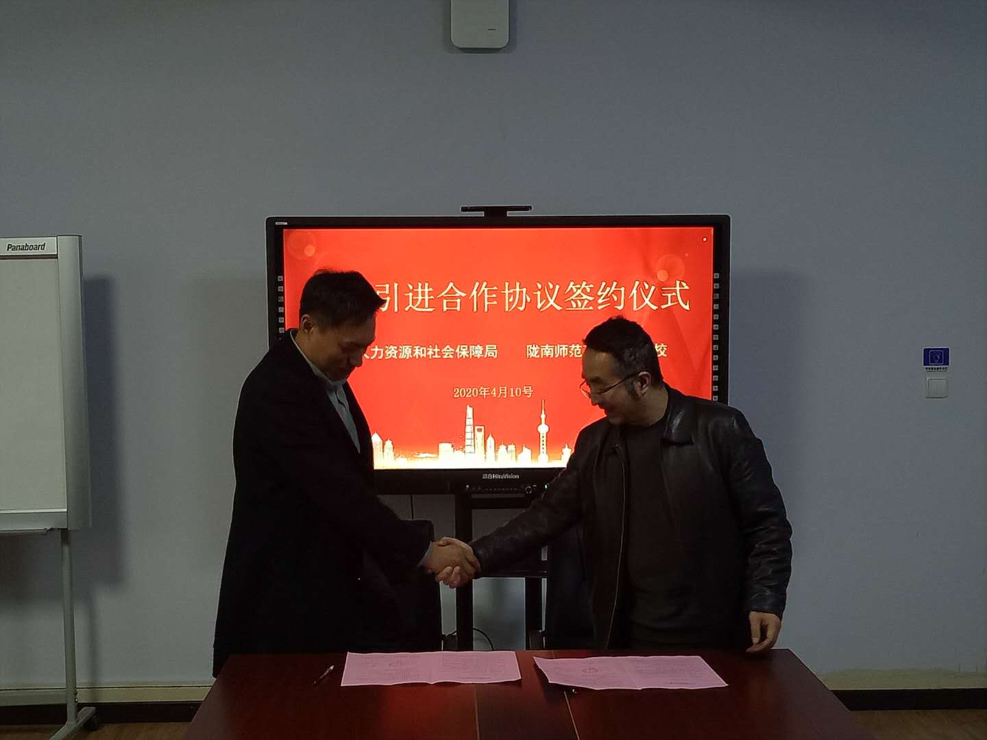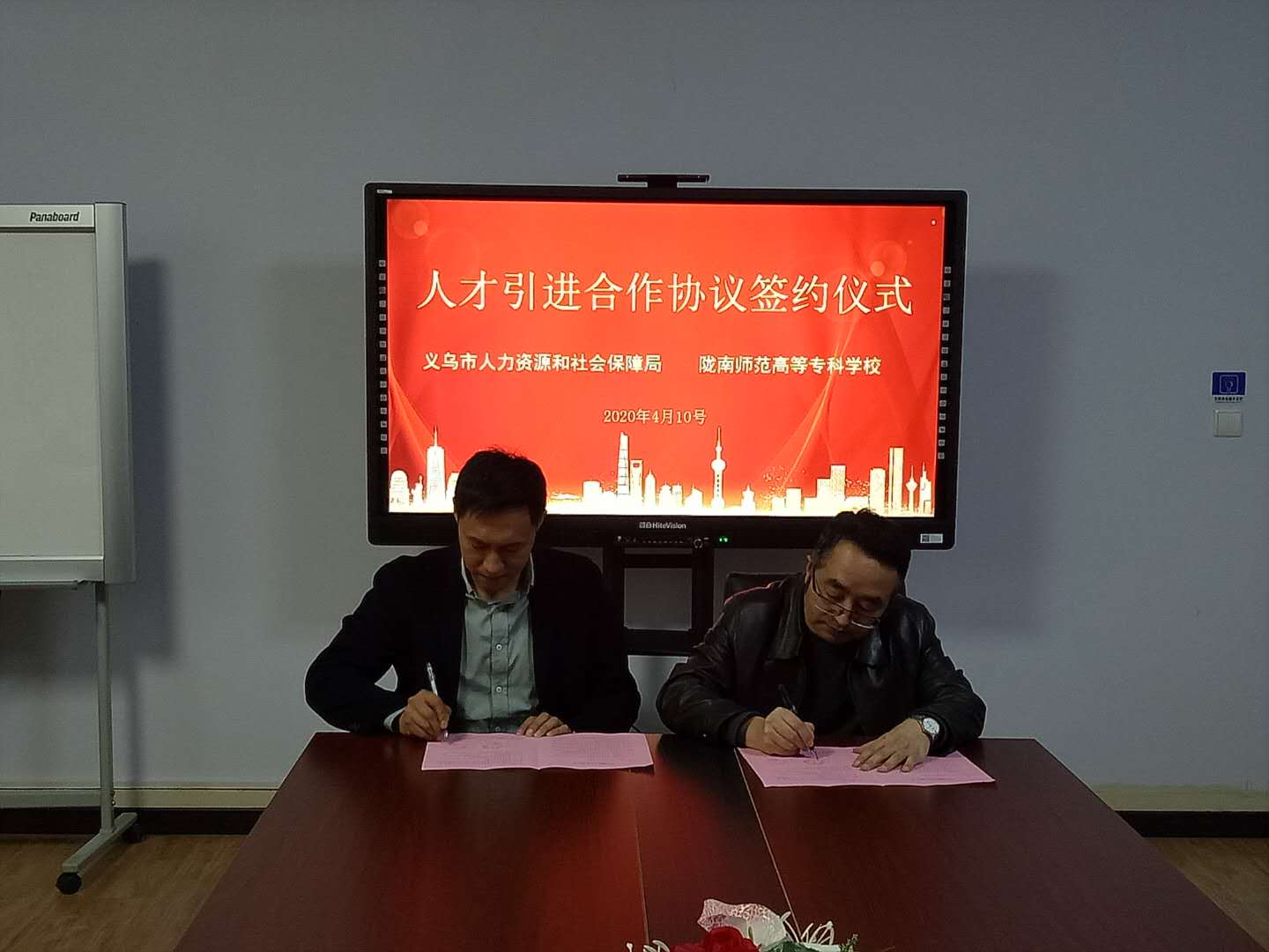 4月10日,学校与浙江省义乌市人力资源和社会保障局引才联络合作协议签约仪式在电子商务学院三楼会议室举行,学校招生就业处负责人汪鸿、电子商务学院负责人何炜,义乌市人力资源和社会保障局引才小组组长金宇生、义乌商城集团幸福湖国际会议中心人事经理陈晓虹等参加会议,双方相关工作人员参加了会议。