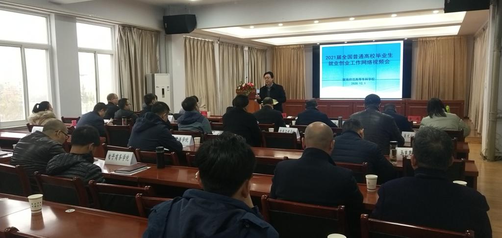 12月1日上午,2021届全国普通高校毕业生就业创业工作网络视频会议在京召开。教育部副部长翁铁慧、人力资源社会保障部副部长李忠出席会议并讲话。我校在北校区三楼会议室设立分会场,副校长王胜青、张勇,教务处、学工处、团委、招生就业工作处等职能部门负责人,各二级学院分管就业工作负责人、就业专人等参加会议。