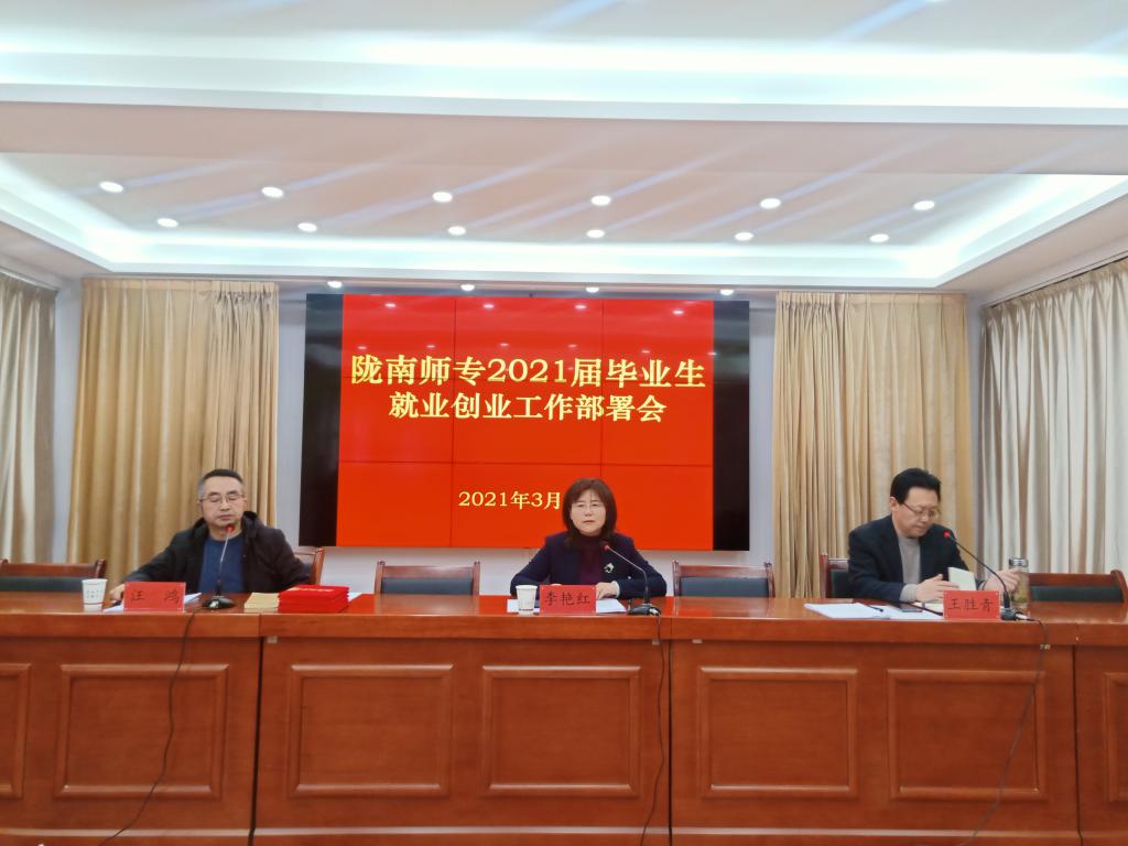 3月8日下午,学校2021届毕业生就业创业工作部署会在电子商务学院三楼报告厅召开,学校党委副书记、校长李艳红,党委委员、副校长王胜青出席会议,招生就业处、教务处、学生处、团委负责人,各学院就业创业工作领导小组组长、副组长、就业工作专人参加了会议。