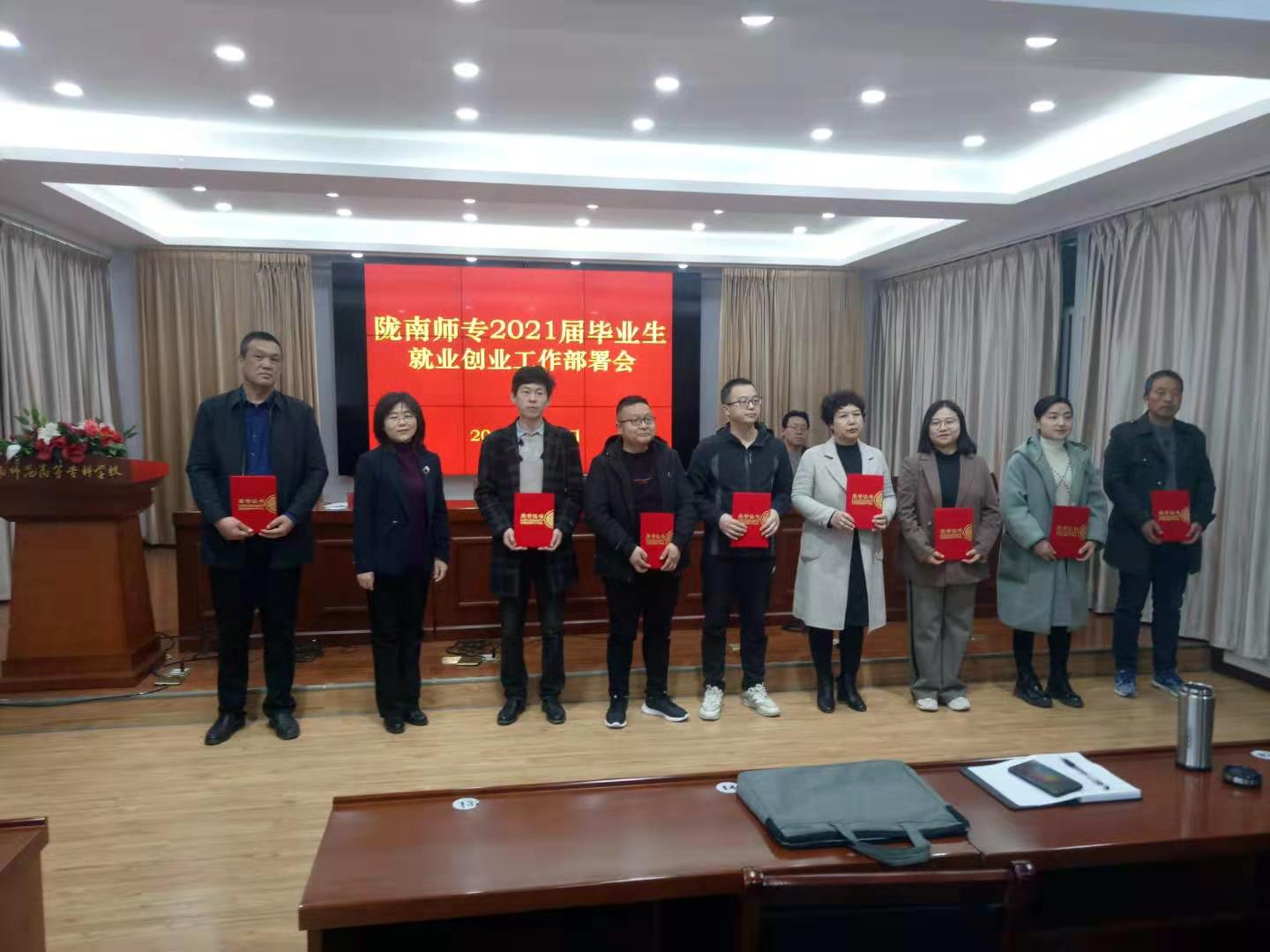 会上,王胜青全面回顾去年我校就业创业工作,并宣读了2020年全校就业创业工作先进单位和先进个人表彰文件。他说,去年学校就业创业工作成绩喜人,2020届毕业生年底整体就业人数达到2104人,就业率达到92.61%;学校贯彻实施“抓两头、保中间”就业工作方针,签约新疆就业527人,占比25.05%,升学和入伍就业550人,占比26.14%,省内就业671人,占比31.89%,东南沿海等其他省份就业356人,占比16.92%;开展毕业生就业市场拓展和就业帮扶工作成效显著,举办线下招聘会8场次,线上招聘会65场次,共提供就业岗位10200余个,签约就业841人,占比39.97%,灵活就业594人,占比28.23%,基层项目招考就业110人,占比5.23%;全覆盖开设就业创业指导课程,完成就业创业师资培训32人次,完成就业创业报告78场次,完成就业创业竞赛活动4场次,其中获得校、省级奖励团队14个,共组织357人参加大学生就业创业训练营并顺利结业,零失误完成2272名毕业生的就业派遣和档案寄送任务,受理就业创业问题咨询760人次,调研回访38家用人单位,回访毕业生560人次,为1257名困难毕业生申报并发放求职创业补贴125.7万元。全校就业创业各项工作管理规范、运行顺畅,管理服务意识、工作责任担当意识强,工作主动性、创新性较为突出。他希望大家总结成绩再鼓干劲,展望未来砥砺前行,全校上下团结一心继续做好今年的大学生就业创业工作。