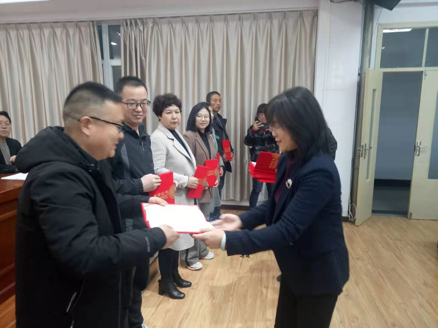 校长李艳红向就业工作先进个人颁发荣誉证书