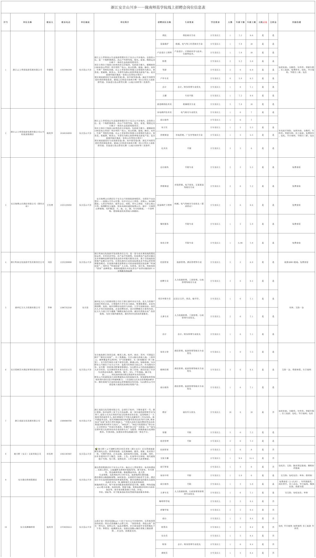 浙江安吉山川乡——陇南师范学院线上招聘会岗位信息表 (1).xlsx