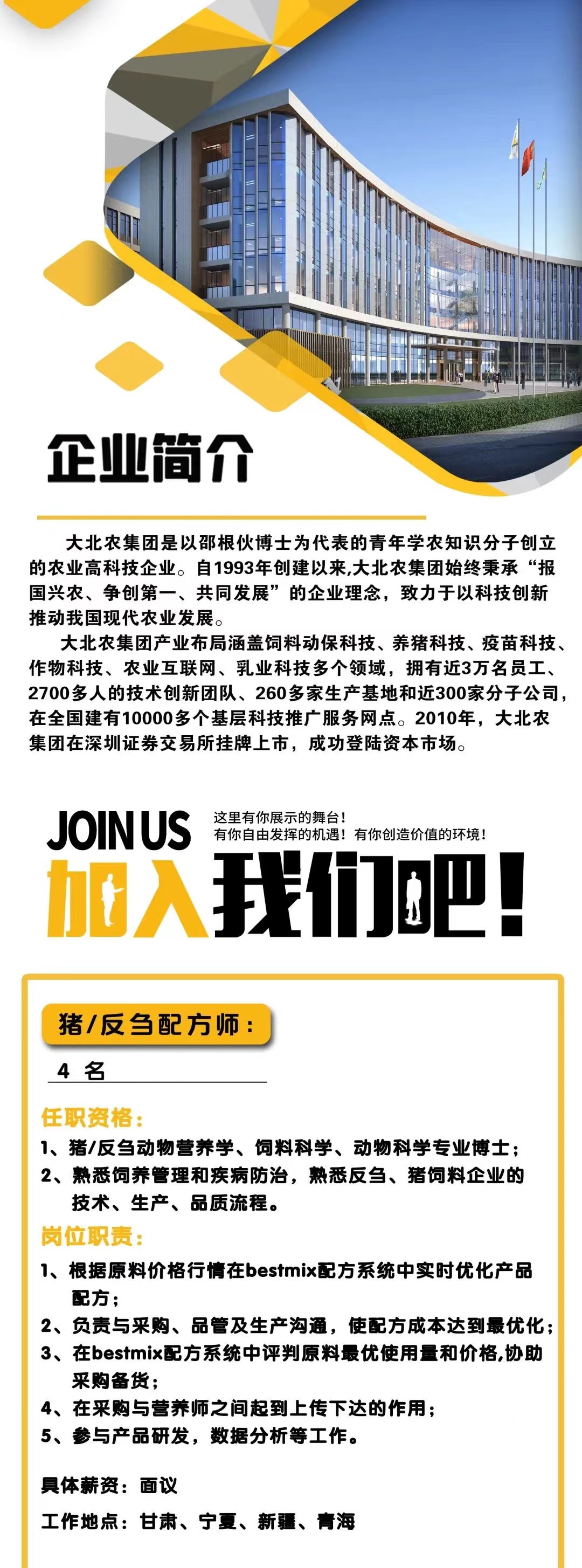 招聘丨大北农-九鼎饲料产业甘宁区 招聘专场