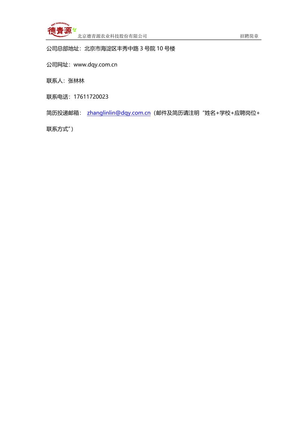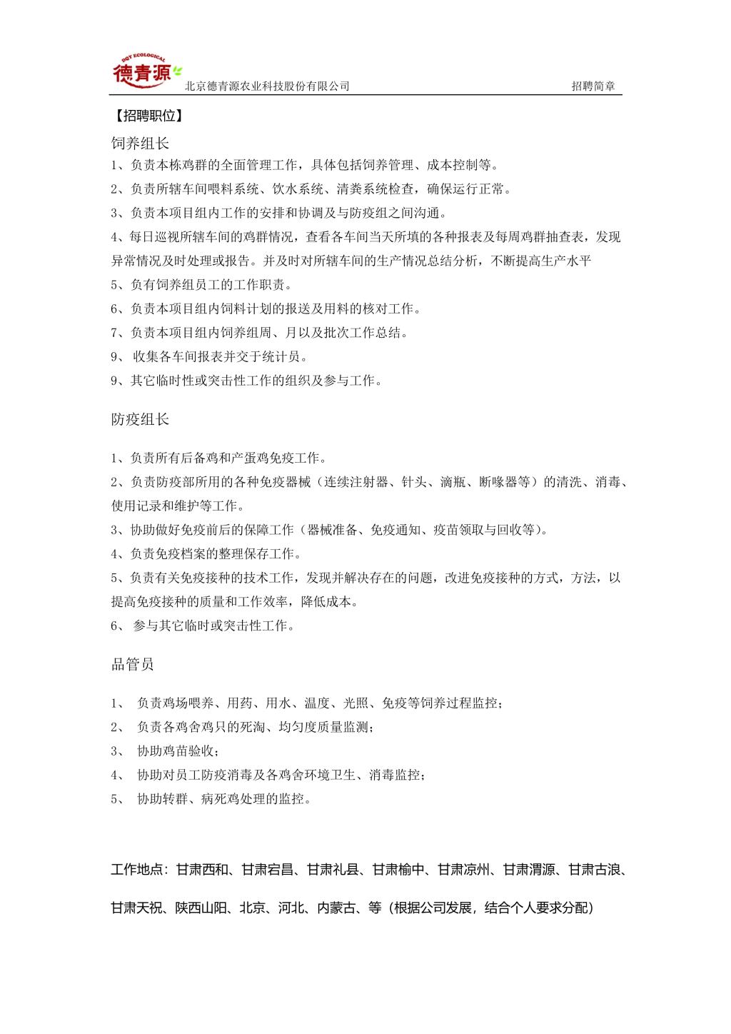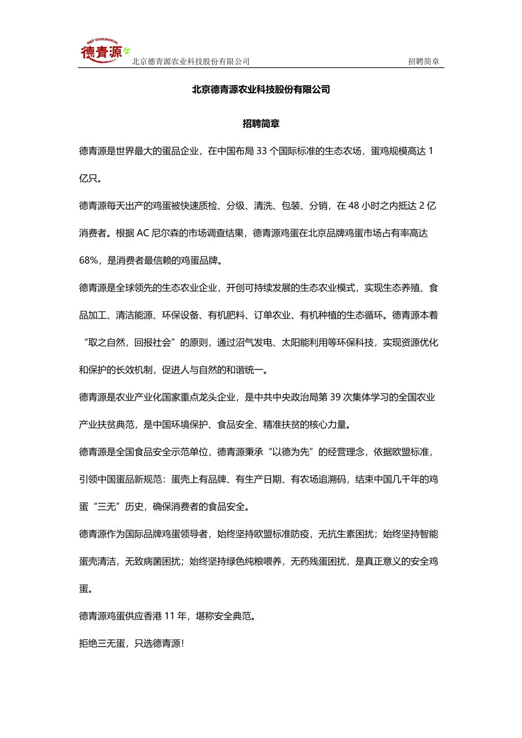 北京德青源农业科技股份有限公司招聘简章