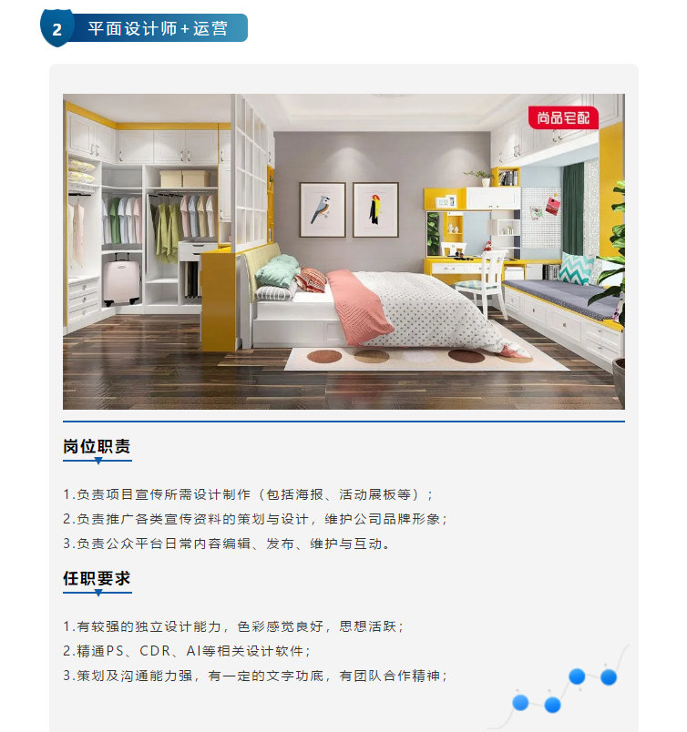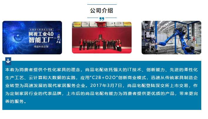 尚品宅配是一家高科技创新性的全屋定制企业,规范的培训体系和任人唯贤的选拔机制为所有员工提供发展深造的机会,是年轻人开拓事业,谋求个人发展的优秀平台。