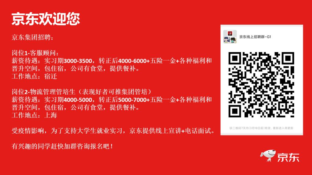 京东集团客服、物流管理管培生招聘(扫码关注)