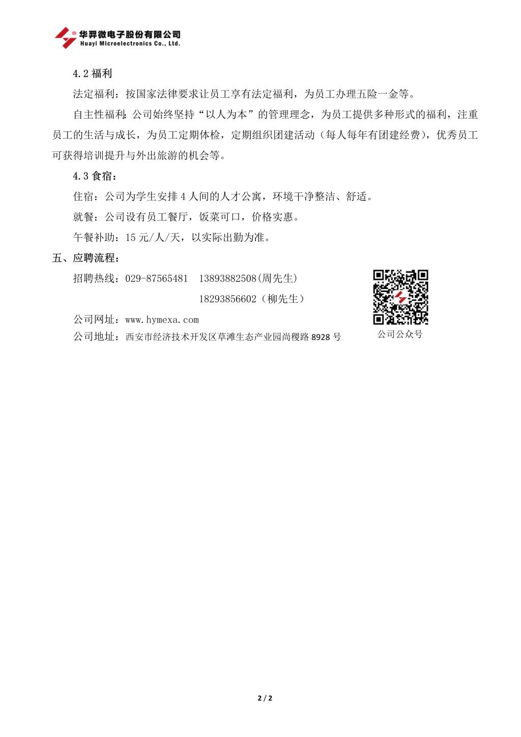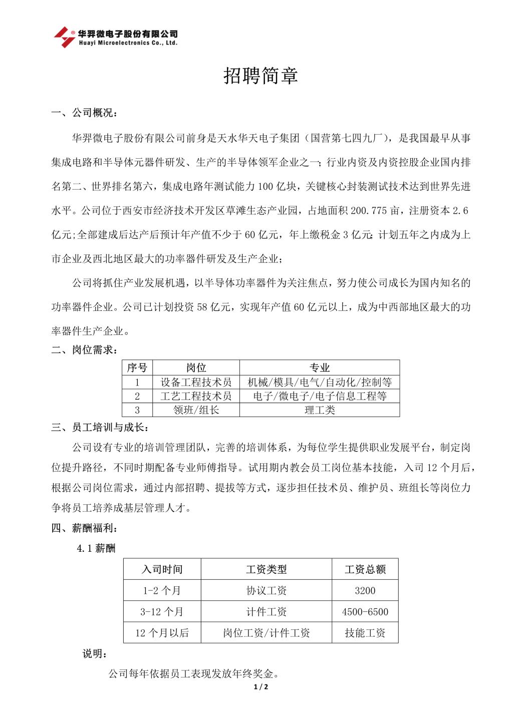 华羿微电(天水华天电子集团)招聘简章