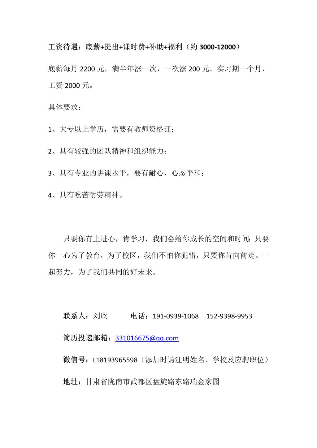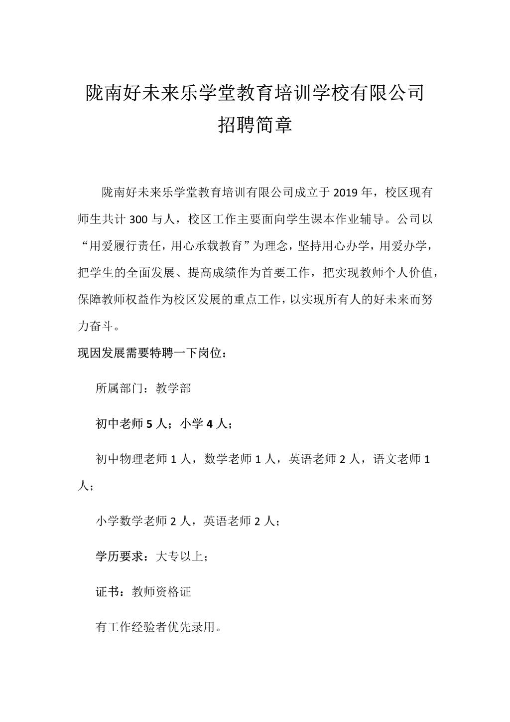 陇南(武都区)好未来乐学堂教育培训学校有限公司招聘简章