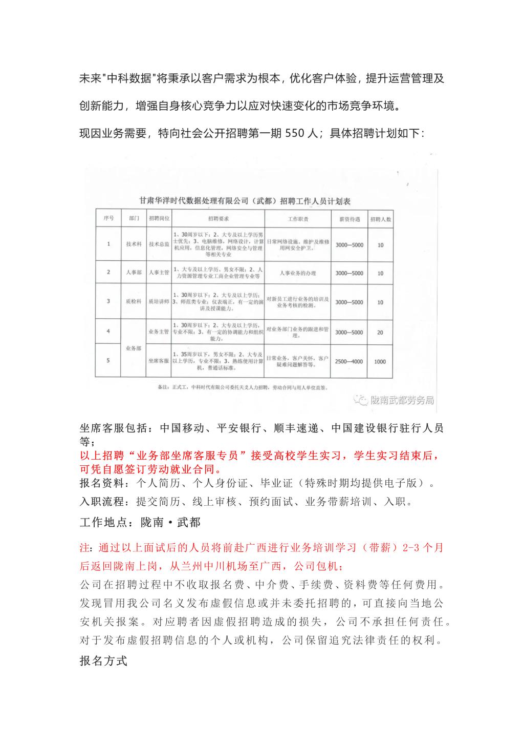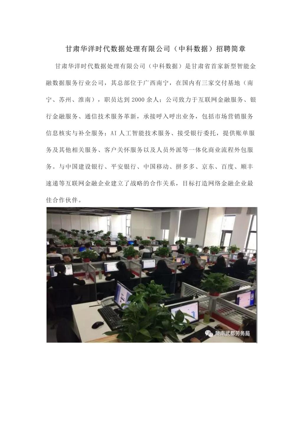 甘肃华洋时代数据处理有限公司(中科数据)招聘简章