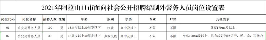 附件1:《阿拉山口市面向社会公开招聘编制外警务人员岗位设置表点击获取》