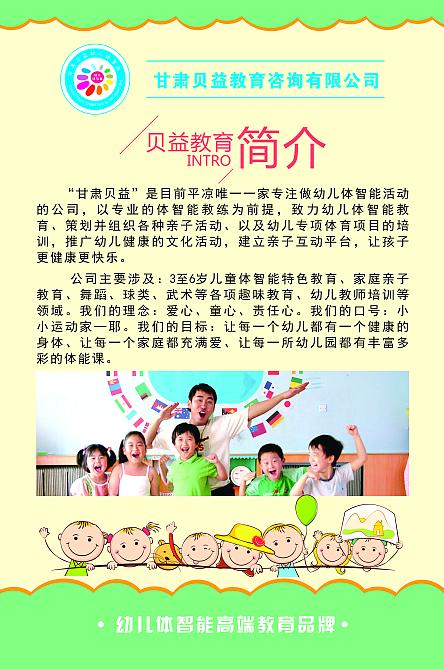 2013年11月—2016年2月陈红娟在甘肃省平凉市崆峒区中街街道办事处从事办事员工作;2016年3月—2016年9月于西安体育学院研习班通过幼儿教育、幼儿体育等专业系统学习;2016年10月—至今自主投资100万元成立甘肃贝益教育咨询有限公司,从事幼儿教育及服务、新型幼儿行业—体智能工作公司目前专注于陇东地区(平凉、庆阳),以专业的体智能教练为前提,致力幼儿体智能教育、策划并组织各种亲子活动、以及幼儿专项体育项目的培训,推广幼儿健康的文化活动,建立亲子互动平台,让孩子更健康更快乐。公司主要涉及:3至6岁儿童体智能特色教育、家庭亲子教育、舞蹈、球类、武术等各项趣味教育、幼儿教师培训等领域。现公司在册员工18人,全部为大专以上学历,学前教育、体育教育等专业毕业的专业型老师。现合作幼儿园所共计29家,入园授课期间受到各园所园长及老师的一致好评,各级教育部门高度认可幼儿体智能这一新兴的教育理念及课程,在各级教育部门带领及指挥下将进一步向各幼儿园所推广及普及此幼儿体智能课程,使更多的幼儿身心达到全面而健康的发展。