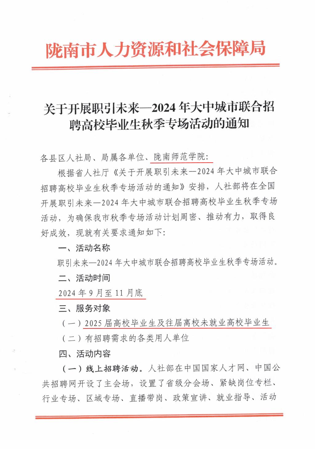 关于开展职引未来——2024年大中城市联合招聘高校毕业生秋季专场活动的通知