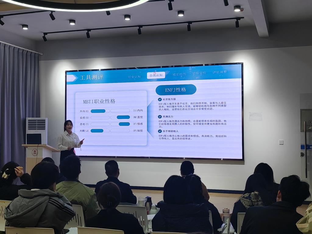 大赛自11月10日启动以来,吸引了185名学生参与成长赛道和就业赛道的初赛。经过激烈角逐,共有60名选手入围成长赛道校级决赛,12名选手入围就业赛道校级决赛。在决赛舞台上,选手们自信满满,他们用清晰流畅的语言剖析自我,将过往经历、兴趣爱好、专业技能一一拆解,精准定位自身优势与潜力。他们融合专业所学与自身优势,经过全面考量与深入分析,精心制定了清晰明确的未来职业目标,规划了一套周全详实、切实可行且富有针对性的实施策略,为自己的职业发展之路绘制了精准且坚定的行动蓝图。他们用激情与智慧,展示了自己对未来职业道路的深入思考和清晰规划。