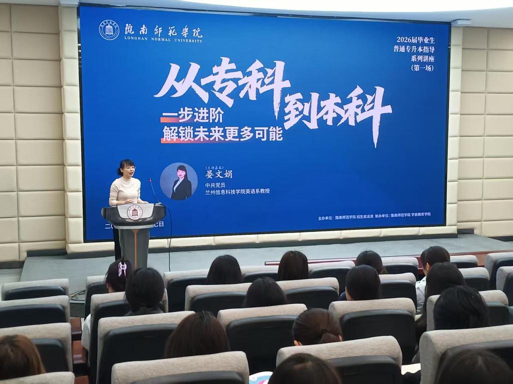本次讲座由兰州信息科技学院英语系晏文娟教授、张靖瑜老师共同主讲。晏文娟教授从专科生职场发展实际出发,系统分析了专升本在突破学历限制、提升系统思维、拓展就业空间等方面的核心价值,通过详实数据展示了学历提升带来的职业发展红利。张靖瑜老师则从备考实践角度,分享了科学的复习规划、学科提分技巧和心态调节方法,为学生提供了切实可行的备考方案。