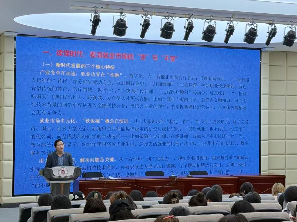 本次讲座由学校招生就业处主办、数学与计算机学院承办,是学校“就业育人”主题教育系列专题讲座活动的重要组成部分,目的在于引导学生树立正确的就业观、成长观,提升职业竞争力与未来发展力。(招生就业处)