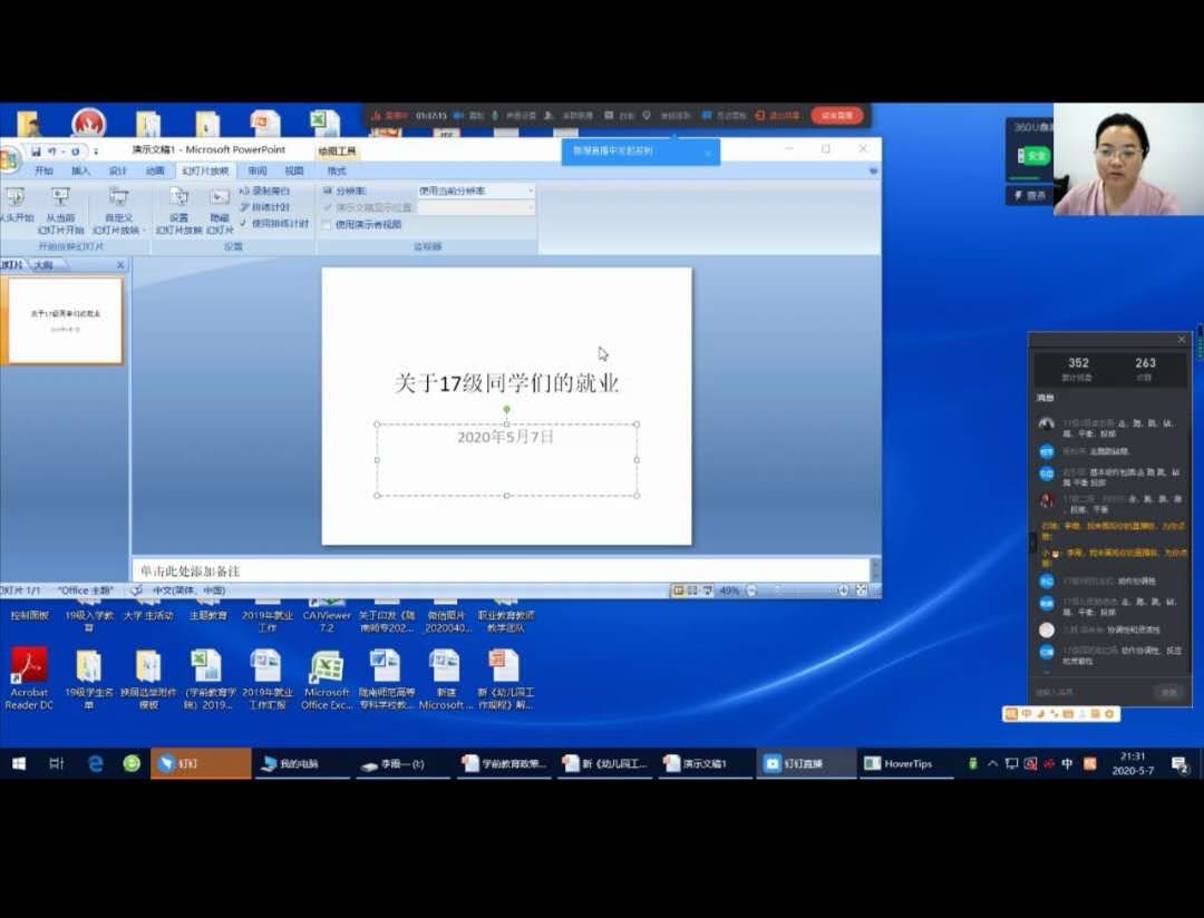 为了使2020届学生顺利就业,找到满意的工作。5月7日晚,学前教育学院利用网络平台,面向2020届毕业生开展了网络直播就业宣讲会,此次宣讲由学前教育学院党总支书记李霞主讲。
